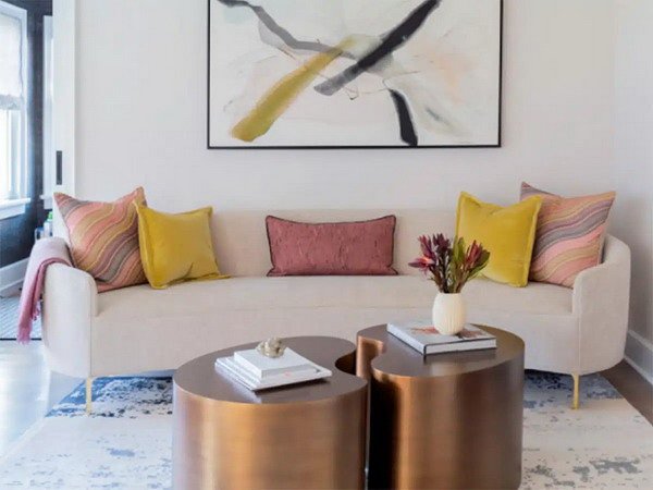 And in more neutral spaces, to give an impact of color with accessories: a glass lamp, an ikebana floral arrangement or a striking abstract canvas.