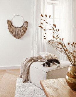 A nice mix of styles that works in any home. The features are diverse: industrial elements, sustainable design, “boho” accessories and brass details, as well as details in black and natural materials such as wood or raffia. The result is a fresh, open and friendly style that works perfectly even outside of California or Scandinavia.